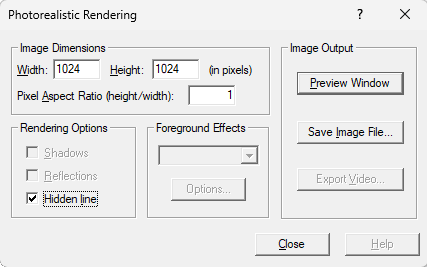 Hidden Line rendering displays your model as black-on-white line art (edges and silhouettes) or a surface mesh. The rendering may be saved in postscript or encapsulated postscript formats.
